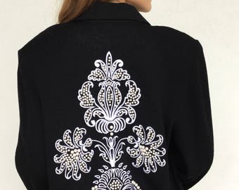 Vintage St John by Marie Gray Black Santana Knit Sequin Cut-Out Back ... View this item and discover similar for sale at 1stDibs - Beautiful 90s ST JOHN by MARIE GRAY Santana knit long sleeve sequined cut out back. Slight chic puff sleeves (no shoulder pads). Smart tailored cut that