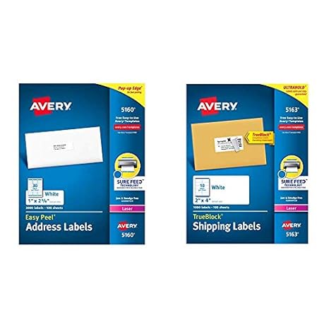 Avery Shipping Address Labels, Laser Printers, 600 Labels, 3-1/3x4 ... This item: Avery Shipping Address Labels, Laser Printers, 600 Labels, 3-1/3x4 Labels, Permanent Adhesive, TrueBlock (5164), White $25.98 ($0.04/Count) Get it as soon as Saturday, Jun 25 FREE Shipping on orders over $25 shipped by Amazon