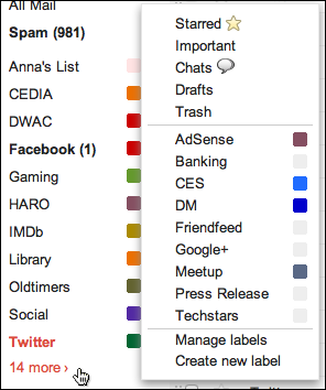Gmail Guide: Inbox Management and Labels - How-To Geek Click "Manage labels" under "Categories.". The "Labels" Settings screen displays. In the "System labels" section, find the system label you want to hide and click the hide link in the "Show in label list" column. NOTE: The label is not completely hidden, rather, it is moved under the "More" link.