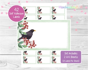Blackbird/Garden Bird Labels, 42 Blank Multi Purpose Stickers (2 A4 Sheets, 21 Per Sheet), Fun For Address Labels/Gift Tags