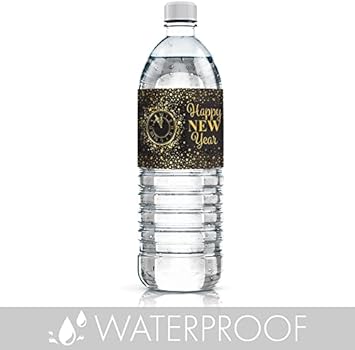 Black and Gold New Year's Eve Party Water Bottle Labels - 24 ...